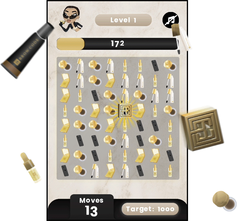 Swipe the Brow Code cosmetics in any direction to match 3 or more of the same products!